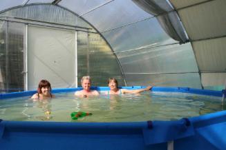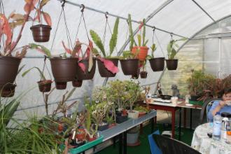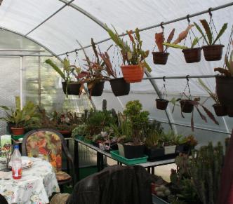 Im Frühjahr und Herbst Domiziel für alle die Pflanzen, vorallem die anderen Sukkulenten und Epiphyten, die dann in Ihre Sommerquartiere im Garten verleilt und im Herbst zum Trocknen wieder zwischenzeitliches diesen Platz benötigen. Wenn es dann draußen auf den freien Sitzflächen ungemütlich wird, ein warmer Platz für die Kaffeepause. Selbst im Winter ist eine gemütliche Runde mit den Mitstreitern aus der Ortsgruppe nichts außergewöhnliches. Im Sommer lädt dann ein Pool zum abkühlen im wohltemperierten Nass ein.